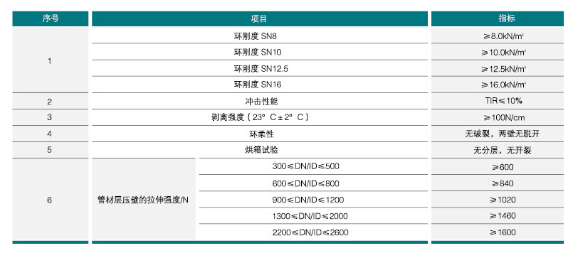 ⑴耐壓、抗沖擊:管材采用了鋼帶增強,環剛度可達到16KN/㎡以上,強度好、抗沖擊,對任何地基都有很好的適應性。